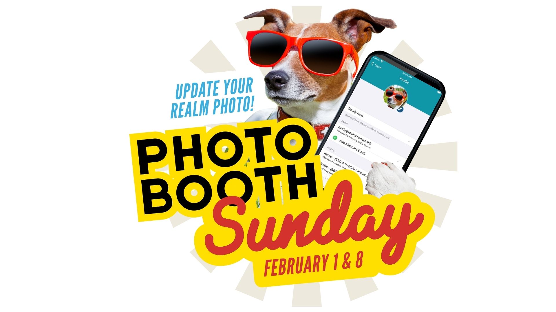 Help us know and recognize one another by adding or updating your photo in Realm, our digital directory! On Sunday Feb. 1 and Feb. 8, we'll have a photo booth set up to help you take a photo of yourself and add it to your Realm account. This will be available in between class and worship as well as following the service.