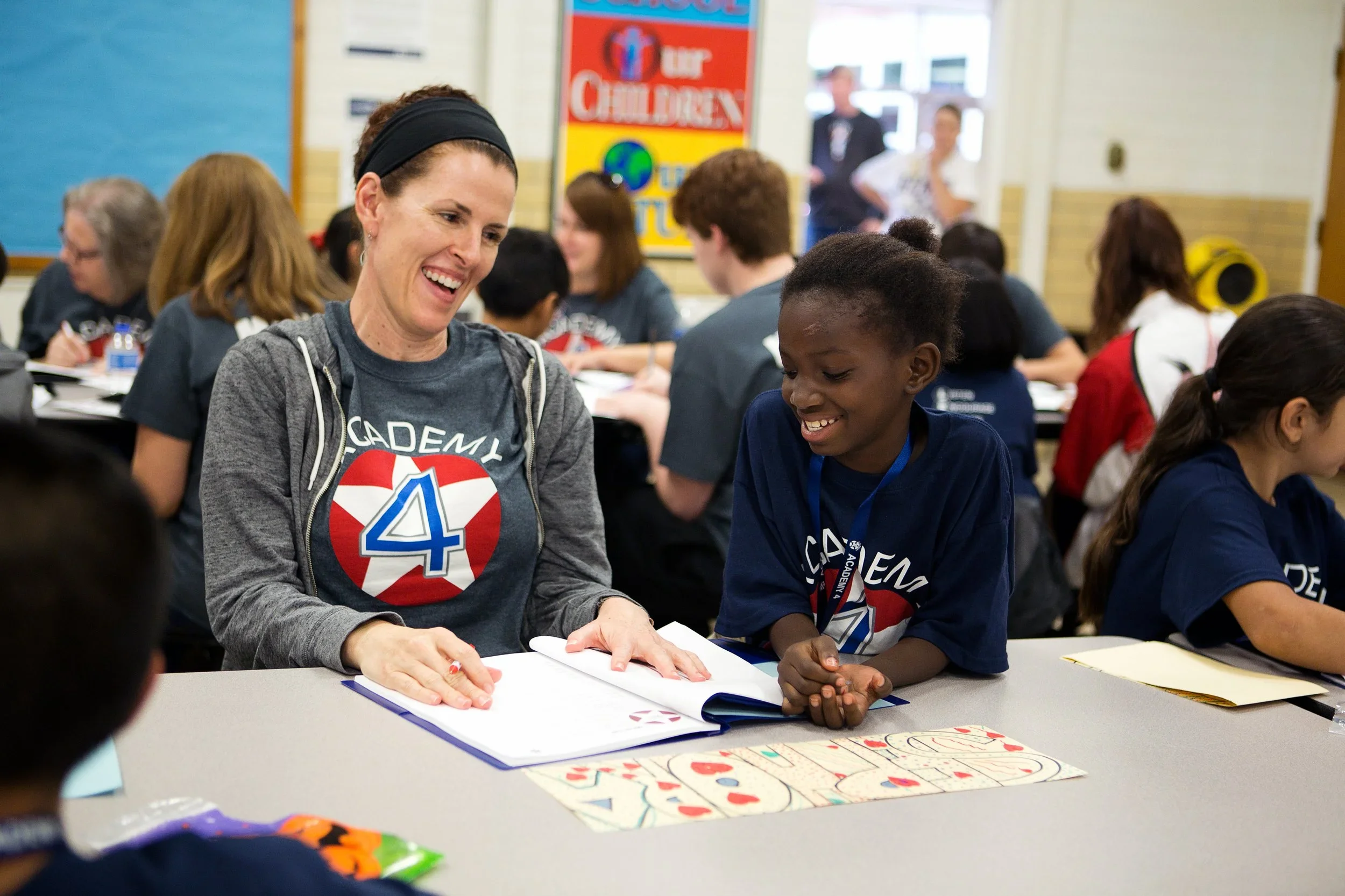 Academy 4 is a local nonprofit organization that pairs 4th grade students in economically disadvantaged schools with a mentor. Students meet with their mentors monthly for 90 minutes to walk through a leadership development curriculum from which they learn a new leadership trait each month (Listen, Encourage, Attitude, Develop, Example, Respect, Serve). Through the simple vehicle of a positive relationship with a dependable adult, 4th grade students gain a greater sense of self-worth, a positive view of the future, increased engagement in school, and encouragement for greater academic achievement.